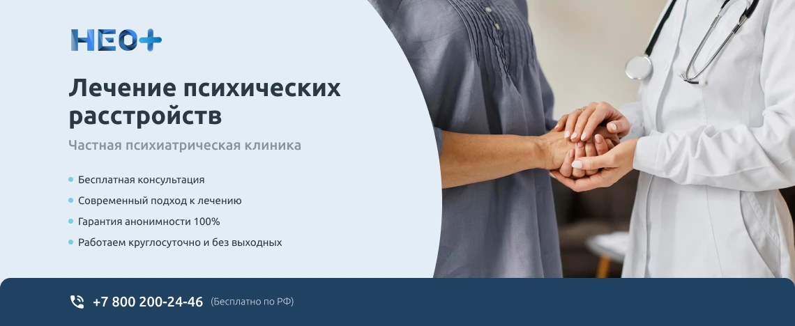 Записаться на прием к врачу-психиатру можно на официальном сайте клиники «НеоПлюс» в Углегорске или по телефону ☎️ +7 (800) 200-24-46. Звоните нам, не запускайте проблему. Мы знаем, как вернуть здоровье и покой в Вашу семью!